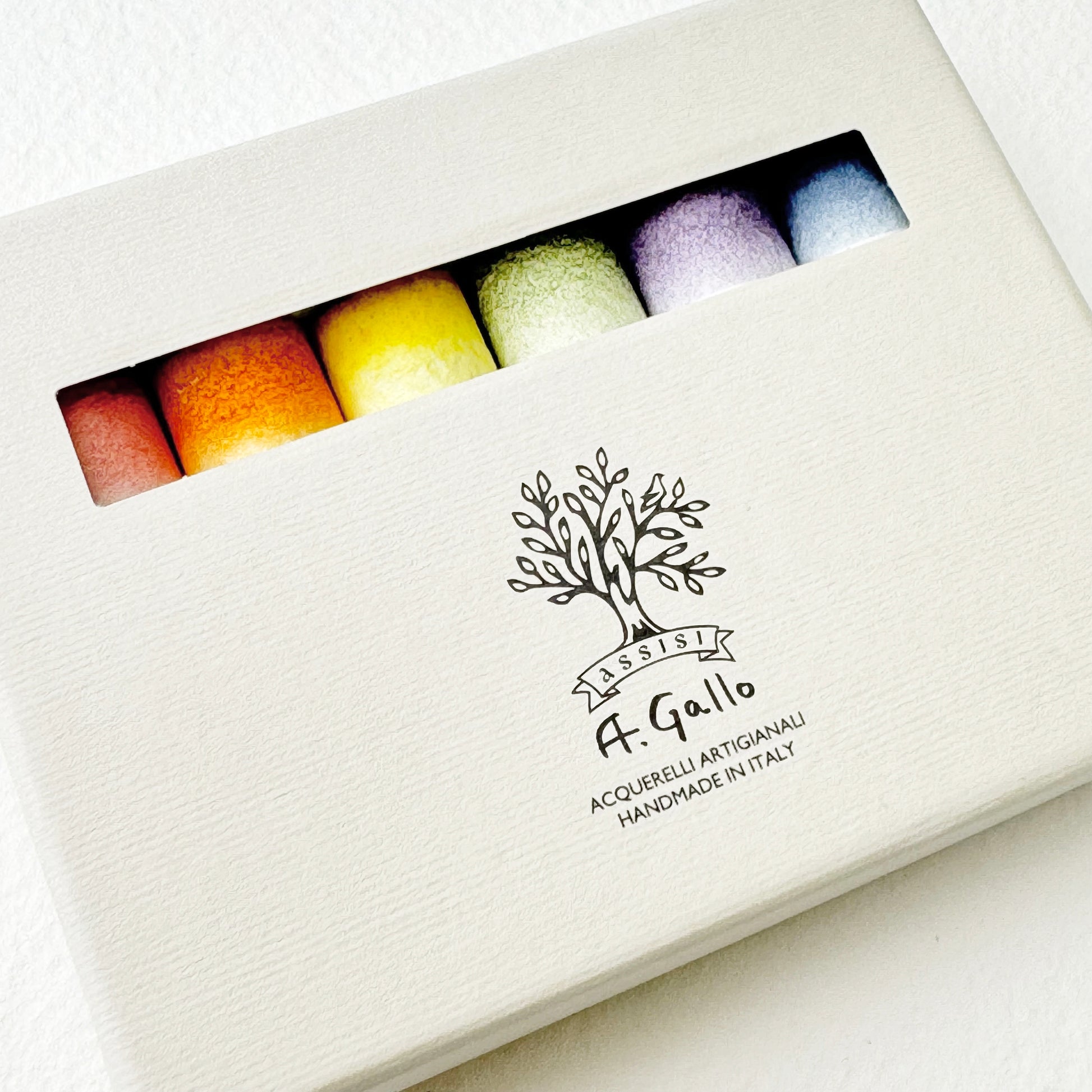 يتم تصنيع الألوان المائية لدينا يدويًا في إيطاليا وفقًا لوصفة تقليدية من الأصباغ الخام والصمغ العربي من شجرة الأكاسيا والعسل المحلي وزيت إكليل الجبل العطري.