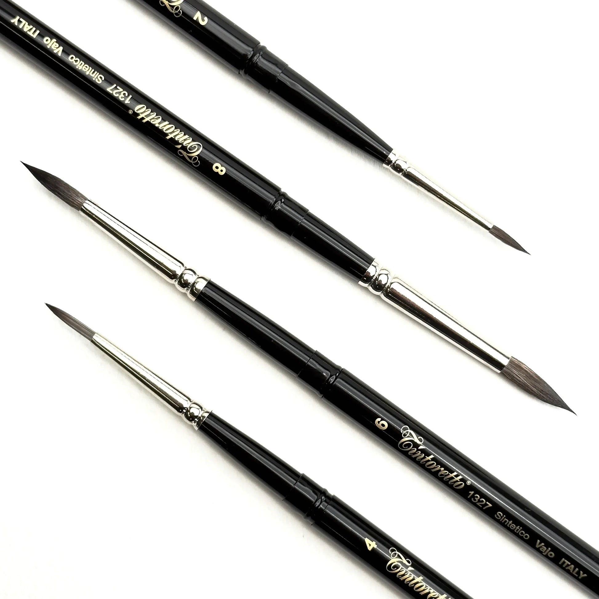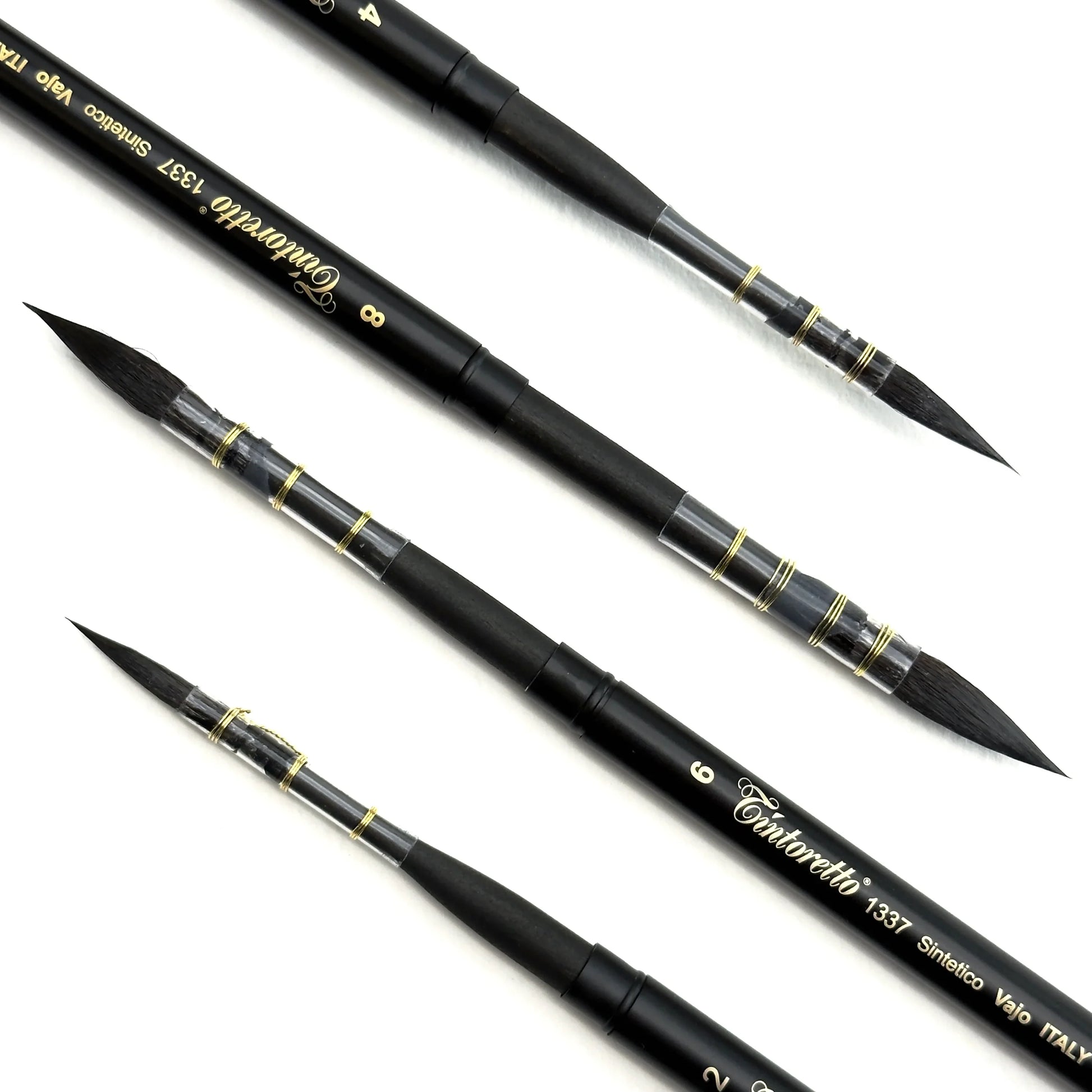 هذه الفرش الإيطالية الجيبية المميزة متوفرة بمقاسات ٢-٤-٦-٨، مصنوعة من مادة كازان ١٣٢٧ الاصطناعية أو فرشاة ممسحة تقليدية ١٣٣٧! 1327 أو 1337 تُصنع فرش سلسلة Tintoretto من ألياف السنجاب الصناعية من كازان، وتتميز بقدرة ممتازة على الاحتفاظ بالألوان والنعومة، فضلاً عن رقة الطرف ومقاومتها للاستخدام.