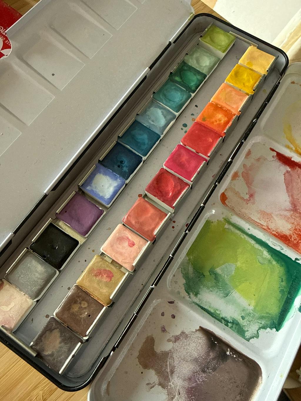 This collection also pairs beautifully with A. Gallo’s transparent watercolors: begin with luminous underpaintings, then refine with opaque accents, highlights, text, and defined edges.