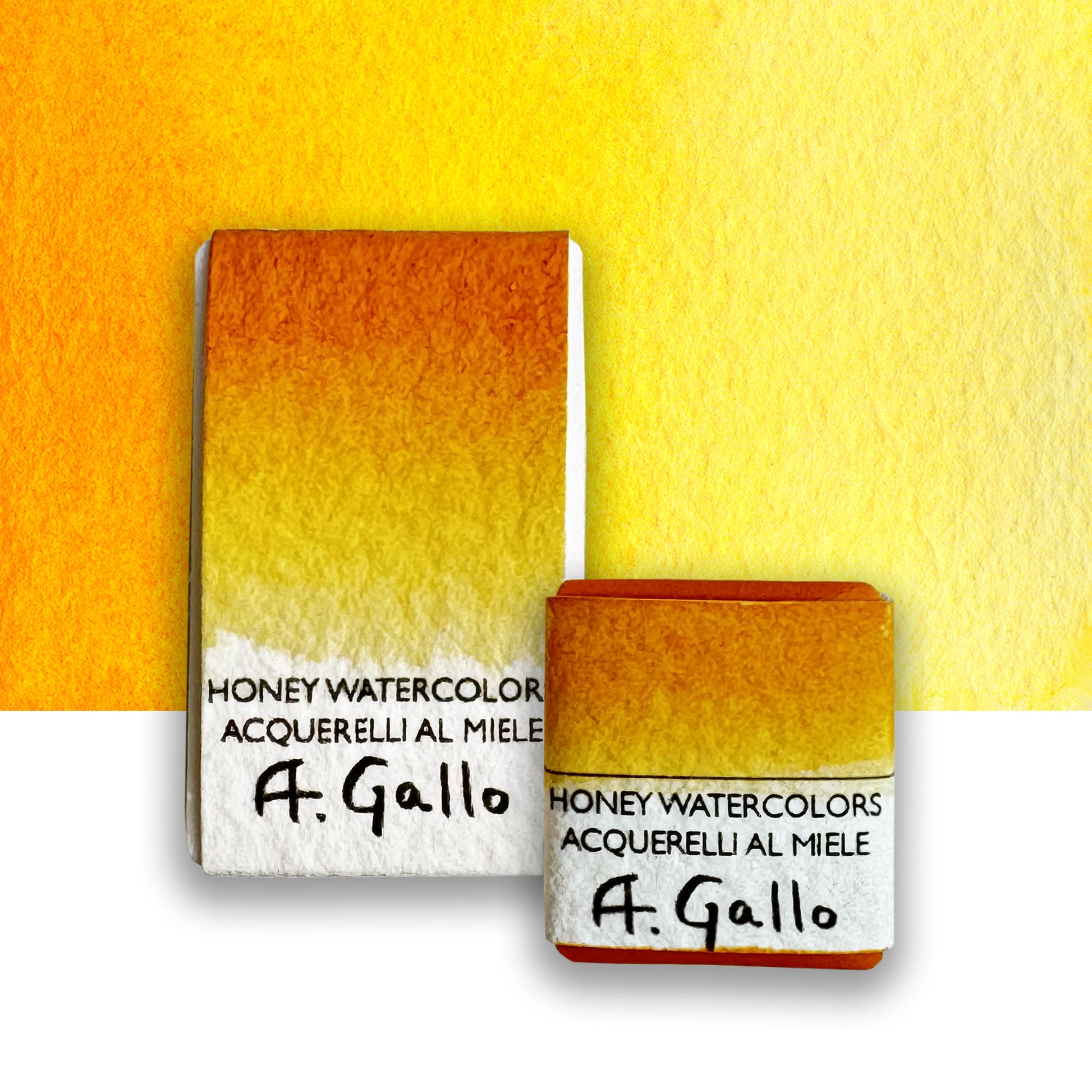 Now available in full pan size! Indian yellow is a clear, deep and luminescent orange-yellow. A modern alternative to traditional Indian yellow, which was once manufactured in rural India from the urine of cattle fed only on mango leaves and water.