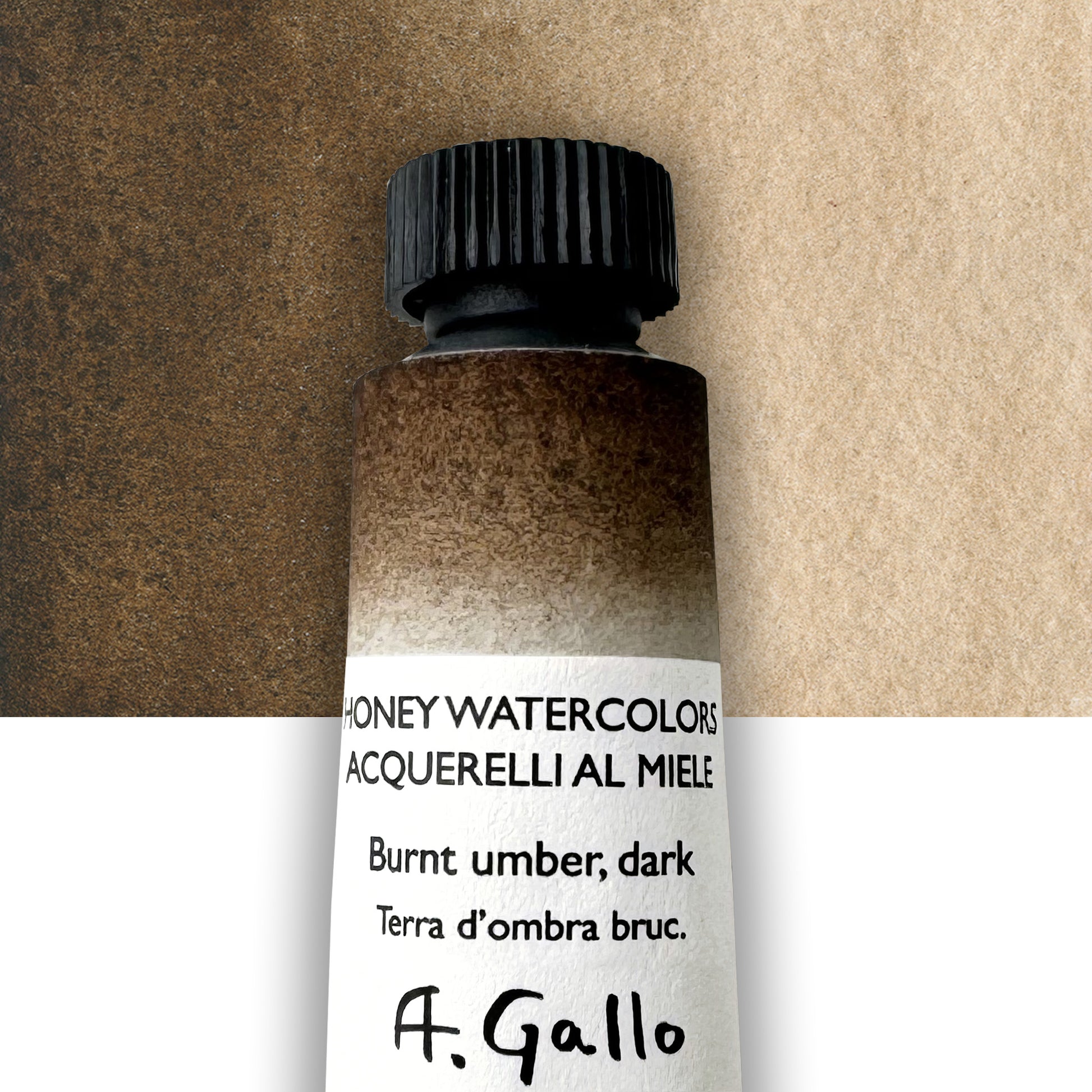 New tube format! Burnt umber, dark is a deep, dark, warm brown. Beautiful single pigment substitute for sepia blends. Basic color for landscape painting. Mixed with quinacridone rose it is an interesting alternative to some Alizarin crimson hues. Made from calcinated natural earth pigment from Cyprus.